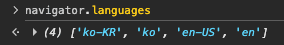 브라우저는 이미 navigator.languages를 통해 우선순위가 있는 언어 목록을 제공하는데, 지금 콘솔 열어서 찍어보면 이런 형태로 나옵니다.
