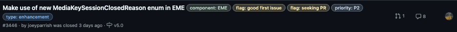 - EME (Encrypted Media Extensions) 스펙에 새로운 MediaKeySessionClosedReason enum이 추가됨